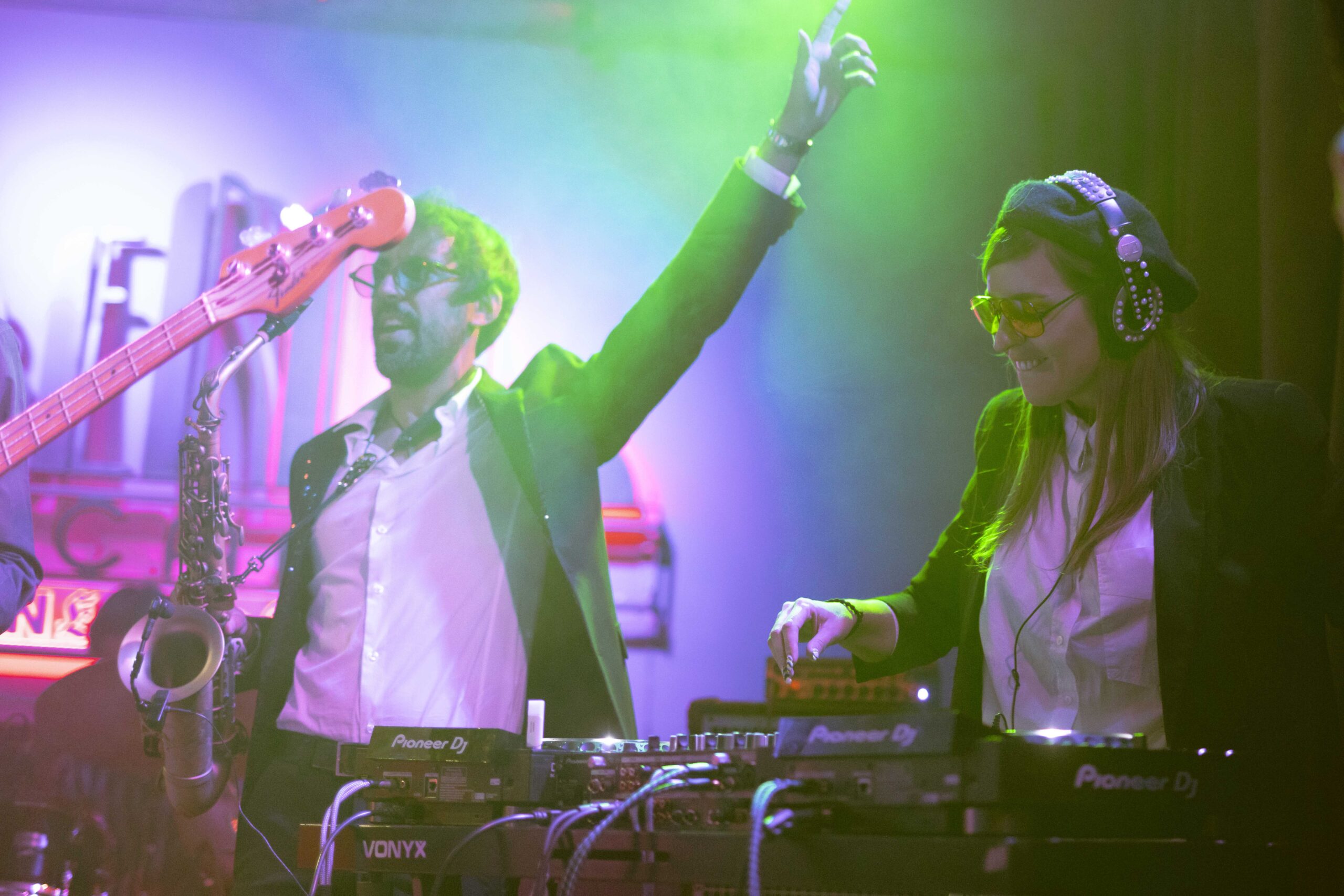 Nuestros conciertos Santi Sax no sólo destacan por la calidad de nuestra música, sino también por nuestra puesta en escena, con un gran despliegue técnico y visual que no te dejará indiferente. Los efectos de luces, el sonido envolvente y la atmósfera del lugar contribuyen a crear un ambiente especial imposible de replicar en una grabación. Este entorno inmersivo te permitirá sumergirte completamente en la música, olvidándote por un momento del mundo exterior y disfrutando de un viaje emocional. Cada detalle, desde la iluminación hasta la disposición del escenario, está cuidadosamente diseñado por Santi Sax para maximizar el impacto visual y auditivo, garantizando una experiencia que te dejará sin aliento.
